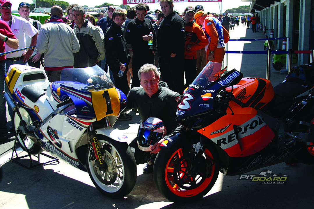 Back in 2005, Jeff Ware and Peter Pap arranged, with the help of Phillip Island and MotoGP, for Wayne Gardner to ride Max Biaggi’s Repsol Honda RC211V, check out what he though compared to his old NSR500. And by the way, he was only three seconds off Max’s times… Photos: Keith Muir, Peter Pap & Trevor Hedge