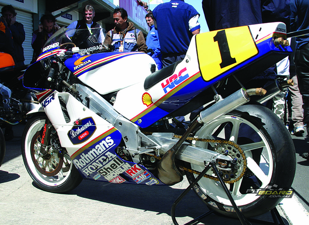 The crowd began to stir as images of the old Rothmans Honda were shown on the screens around track. You can bet that most of the crowd are hardened GP goers. Punters that were there for Gardner’s gutsy wins in 1989 and 1990. The NSR’s livery was bringing back memories. The crowd was starting to rumble…
