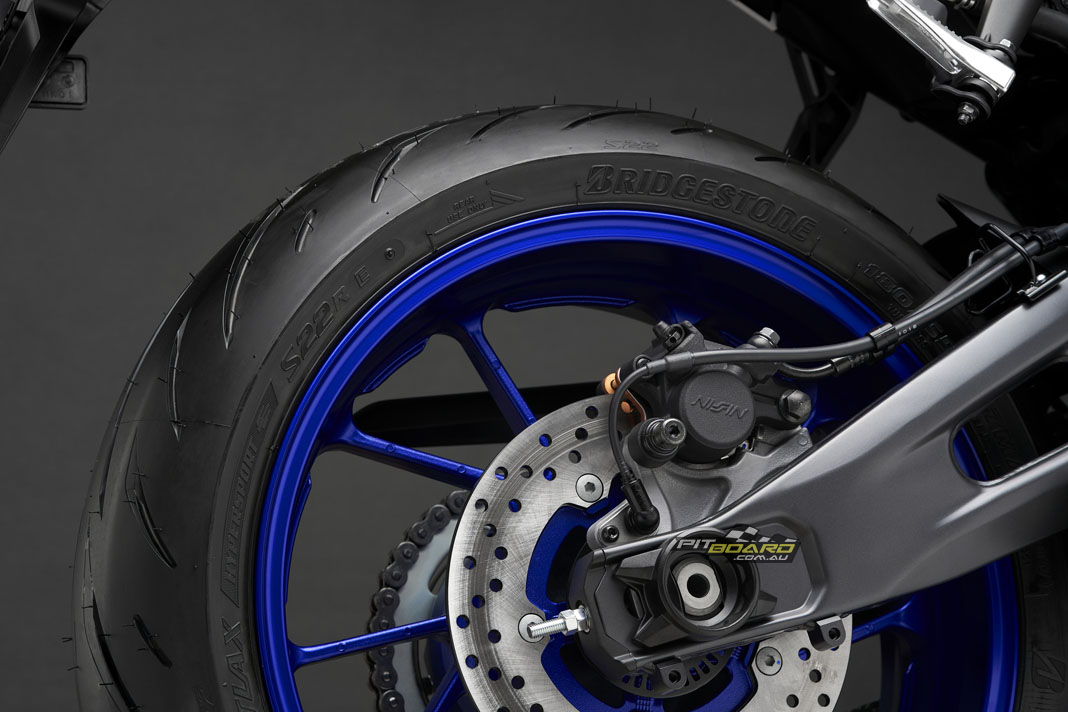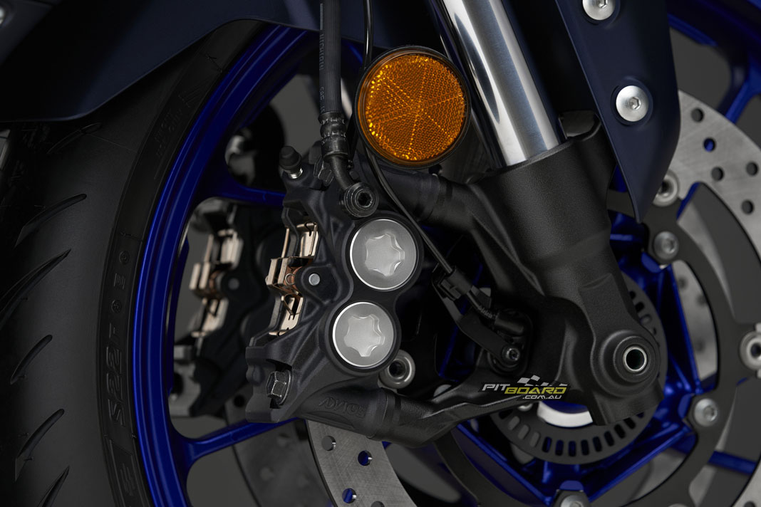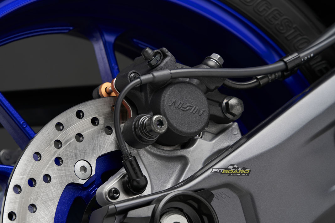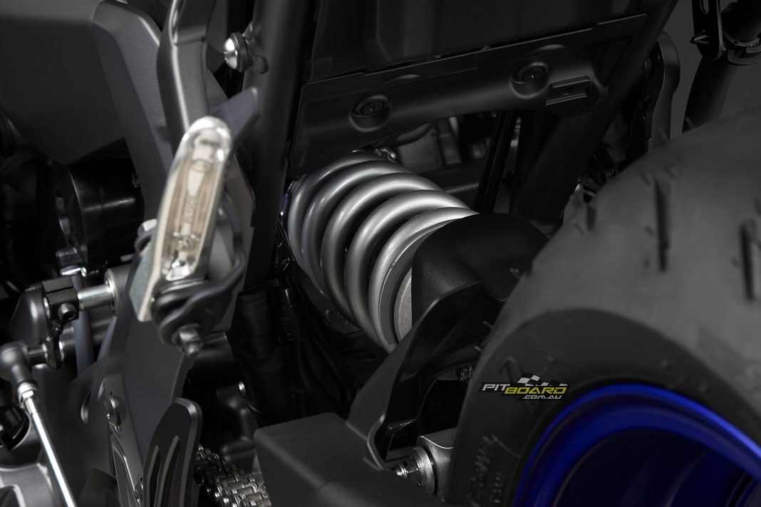 Yamaha say the link-type Monocross shock with adjustable spring preload and rebound damping strikes a balance between ride comfort and sporty performance for capability across a wide range of uses, from urban commuting to track days. The rear shock unit is mounted horizontally, fastened to the crankcase for efficient use of space and weight, contributing to mass centralisation and further highlighting the bike’s compact size.