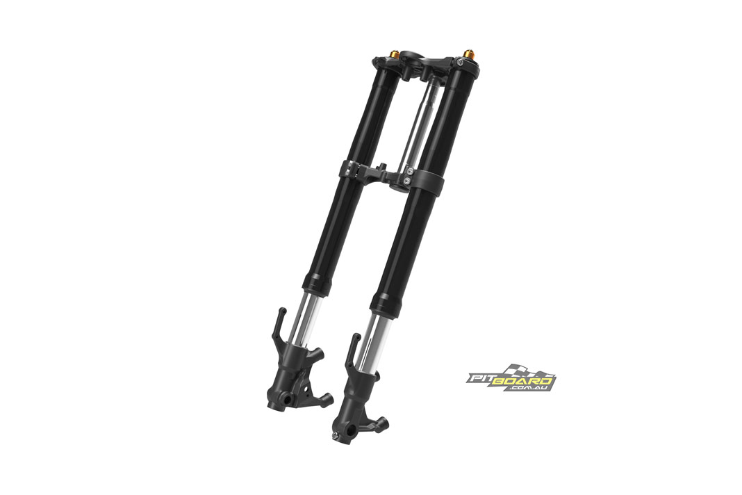 The 2022 YZF-R7 features inverted KYB 41mm front forks with optimised spring rates and damping settings for front-end feel during cornering and braking. The product specific settings make for easy and predictable behaviour, Yamaha state, with a stiff feel for twisty roads and racetracks. The forks are fully adjustable for preload, rebound and compression damping force. The inverted KYB front forks are mounted to the steering tube via a forged aluminium lower triple-clamp, and a gravity-cast aluminium upper triple-clamp.