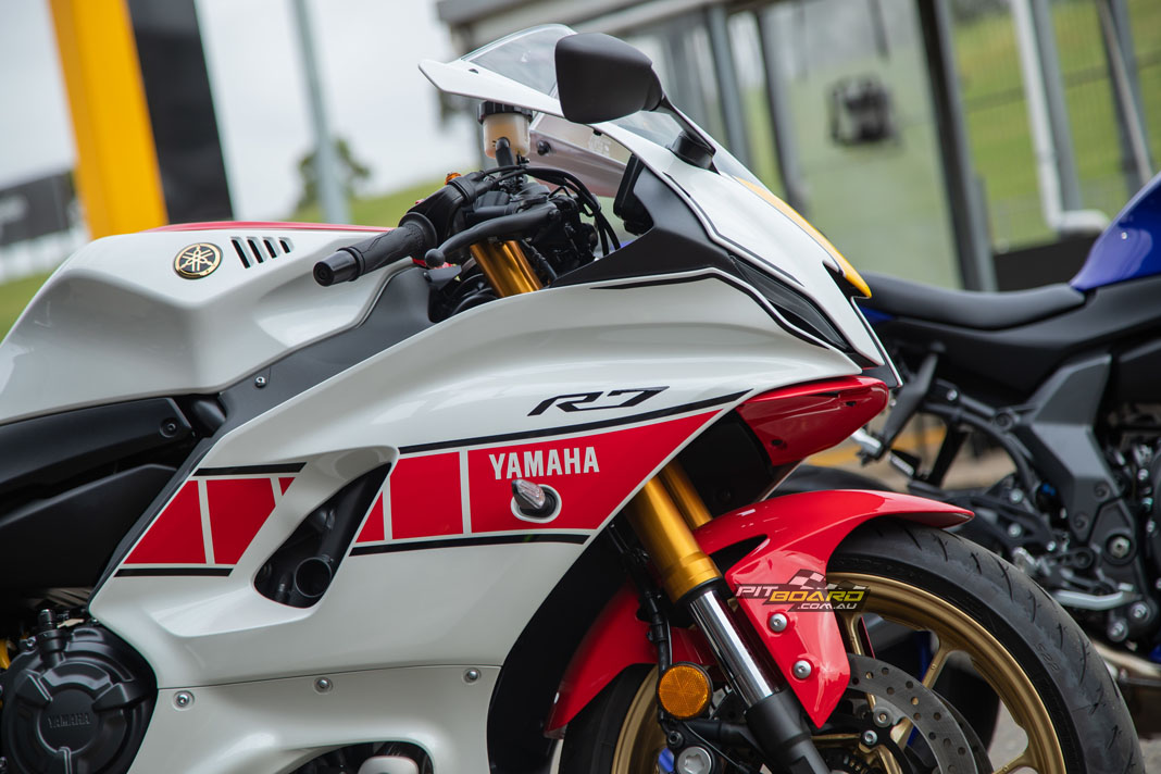 After seeing the new YZF-R7 in real life for the first time, it’s safe to say that just about everyone who caught a glimpse of it was impressed. Everything from the single projector front, streamline curves and R1 inspired tail fairing were carefully crafted to make one stunning looking bike. Don’t even get me started on how extraordinary the 60th anniversary livery looks. If I had the coin, one would be hanging up on my wall right now.