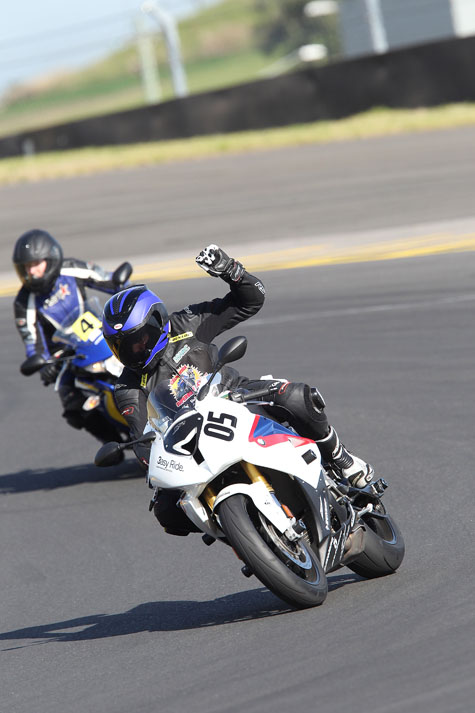 Naturally, I freaked out and immediately backed off the throttle, ending up with a wide exit line. After this and as the day wore on, I felt as if I was actually decreasing my speed into the corners and each one began to feel laboured. I thought this may be a result of muscle fatigue after four separate adrenalin shots around the track. On the fifth and final drill, the reason for my discomfort became apparent. Since the second drill teaching us about turn points, I had had my attention focused too much on meeting the white crosses on the track. This meant as I approached the cross, I reduced entry speed too much and was tense moving into the corner. Drill five was called ‘two-step turning’ and focussed on teaching us to locate the turn point on the road, then once it is clear that you will hit that mark, change your eye line to focus on the apex of your corner.