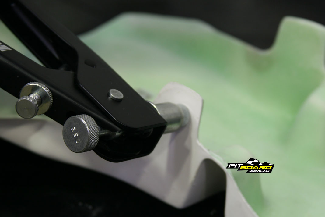 If the glass is too thick, such as in situations where carbon bordering has been chosen as an option, you may need to sand or grind the contact points between the fairings so that they reach the correct thickness for the Dzus Fastener to function correctly. Rivnuts also work as an excellent replacement for Dzus Fasteners if available.