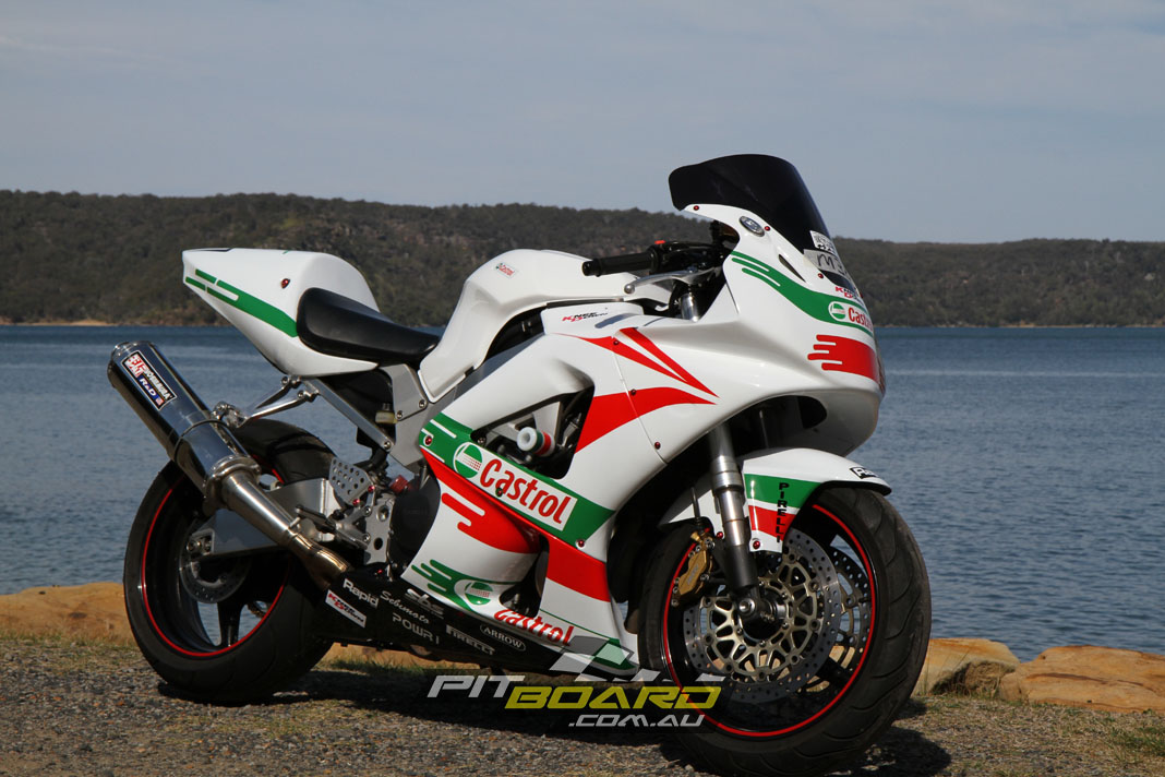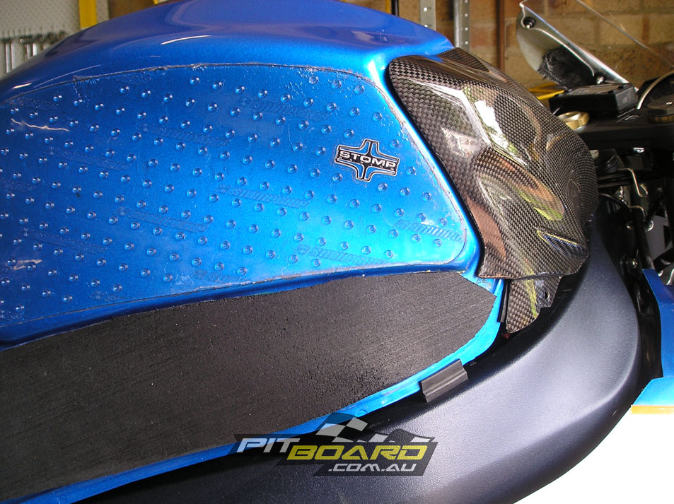 Replacing your stock bodywork with something more suitable for track use is highly recommended and due to the rules for most series stipulating a bellypan able to hold a certain amount of fluid, pretty much essential. Aftermarket fairings made from fibreglass ($800-$1200) or carbon-fibre ($2000-$3000) will save a substantial amount of weight from the heavy stock plastics and are also much easier and cheaper to repair if you happen to have an off. At this time I would also suggest picking up a slightly damaged tank from a wrecker if you can find one at a reasonable price ($350-$700), as replacing a stock tank is a very expensive exercise if you want to return your bike to road trim down the track.