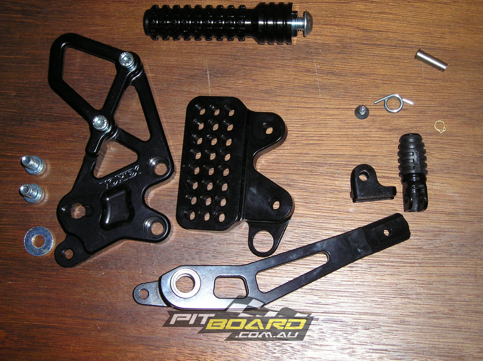 To protect the expensive OEM items and allow increased adjustability, you should look to replace the standard handlebars with aftermarket clip-ons ($150-$250) and swap OEM footpegs with adjustable rearsets ($350-$800), from Vortex, Renthal, Woodcraft, Yoshimura, Sato or similar. I also prefer some grips with a little more bite and find the Renthal dual compounds to work very well ($25).