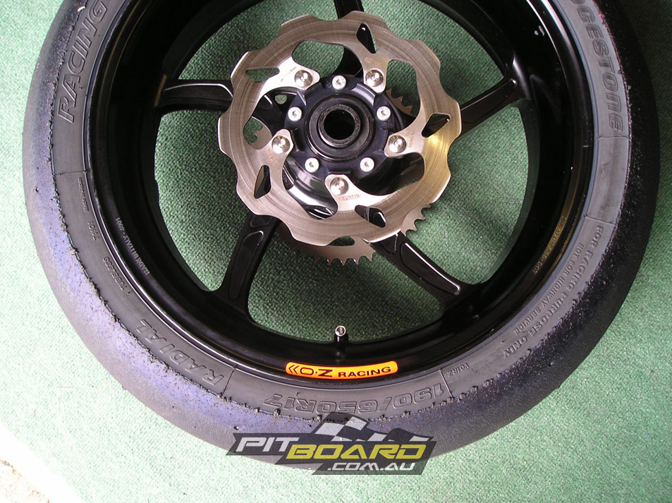 If budget and class rules are not a problem then a set of lightweight aftermarket wheels are possibly the most significant weight reduction item you can add, due to the fact that any weight saved here is both unsprung (improved suspension action) and rotating (improved handling, acceleration and braking). Aftermarket aluminium rims are the most cost effective option ($1500-$2500/set) and should provide a small but noticeable improvement over OEM. For a more pronounced improvement Magnesium Alloy ($2500-$4000) or carbon-fibre ($4000-$5000) are the materials of choice for WSBK and GP teams and look just as trick as they perform.