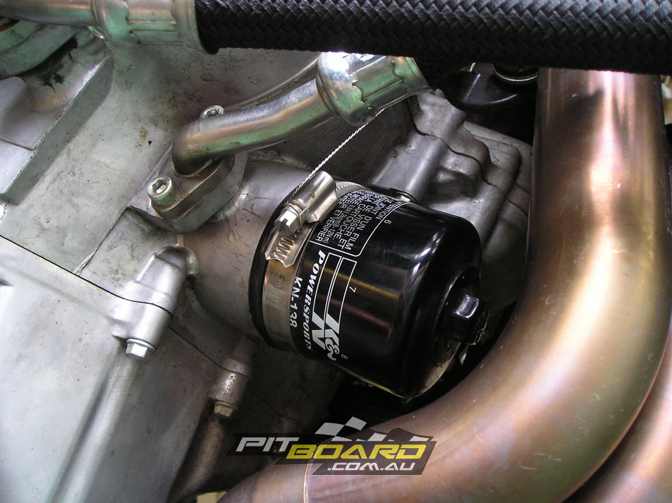 Finally on the bike preparation front, all race bikes are required as a minimum to have the following items lockwired – oil filler cap, oil filter, sump plug, radiator cap and front brake calliper bolts. I like to use a hose clamp around the oil filter, and “R” clips through the caps and calliper bolts, this allows easy removal without having to rewire everything each time.
