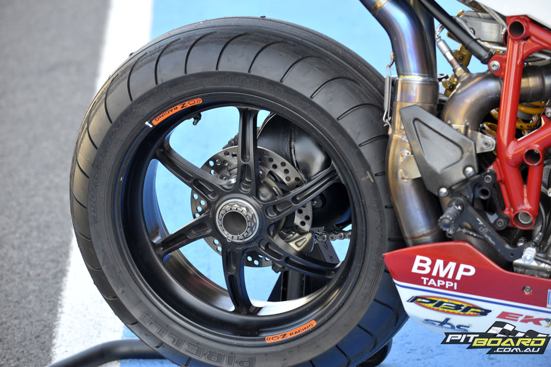 Rear tyre: Pirelli Slick, 190/65 – 16.5