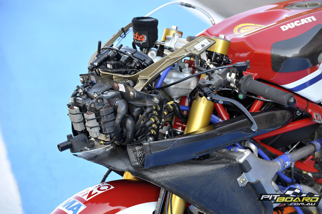 With this in mind and after studying his sector times on the infield of all the tracks this year, it was clear that this machine is a weapon in the parts that count… and with my own 1198 project in Australia at the time, I was keen to see how much of an animal a WSBK championship winning machine really was.