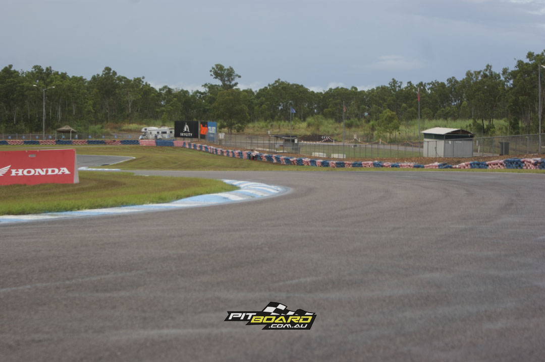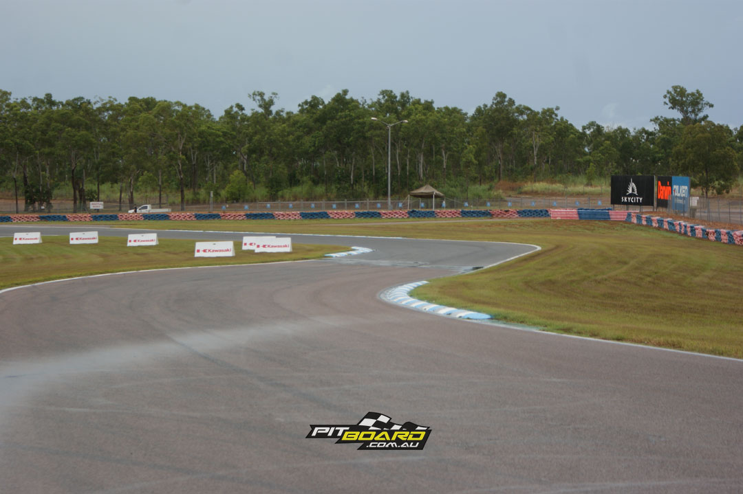 Onto the circuit now. I found it probably due to lack of use but more likely having all the cars running around on it always made the 2+4 events a bit greasy. With the front straight at Darwin 1.2km long it gave you a nice little rest but also meant it allowed Craig Connell and Stevo Martin on the factory Ducatis to really stretch their legs. I had everything possible tucked in trying to stay in the slipstream especially of Craig. We were tapped out in sixth on the approach to turn 1.