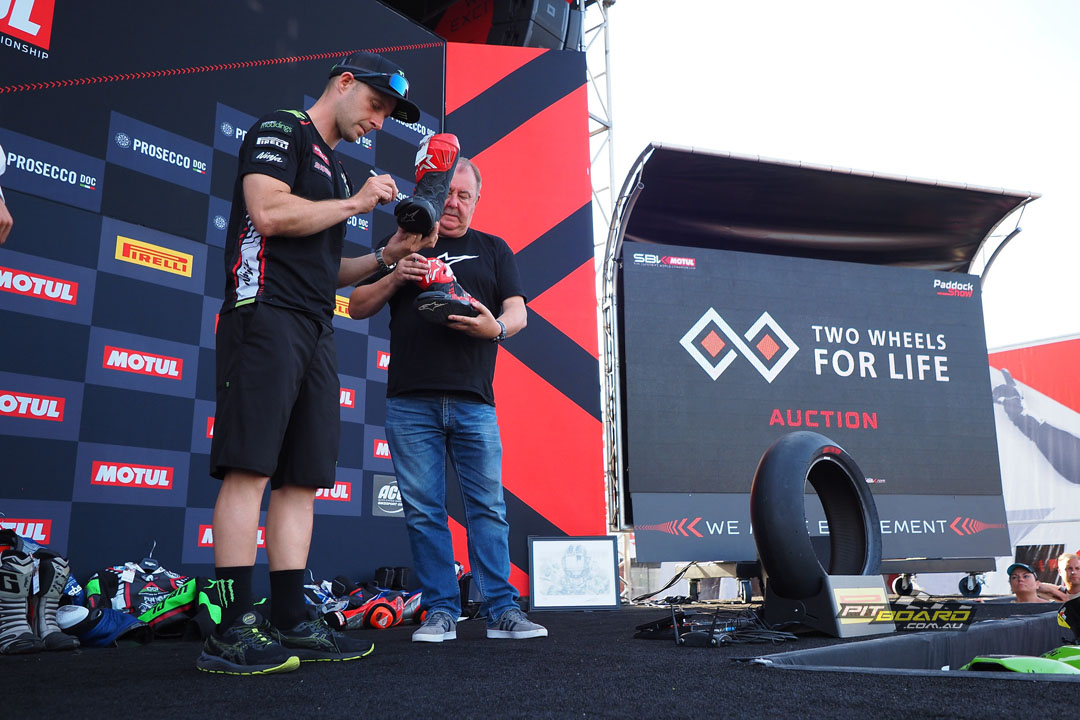 Signed boots from six-time Champion Jonathan Rea (Kawasaki Racing Team WorldSBK) were sold for $1650.