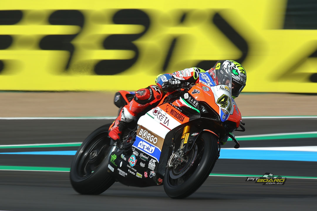 Michael Ruben Rinaldi (Aruba.it Racing – Ducati) battled his way up from 10th on the grid to claim a second podium of the weekend, and the season.