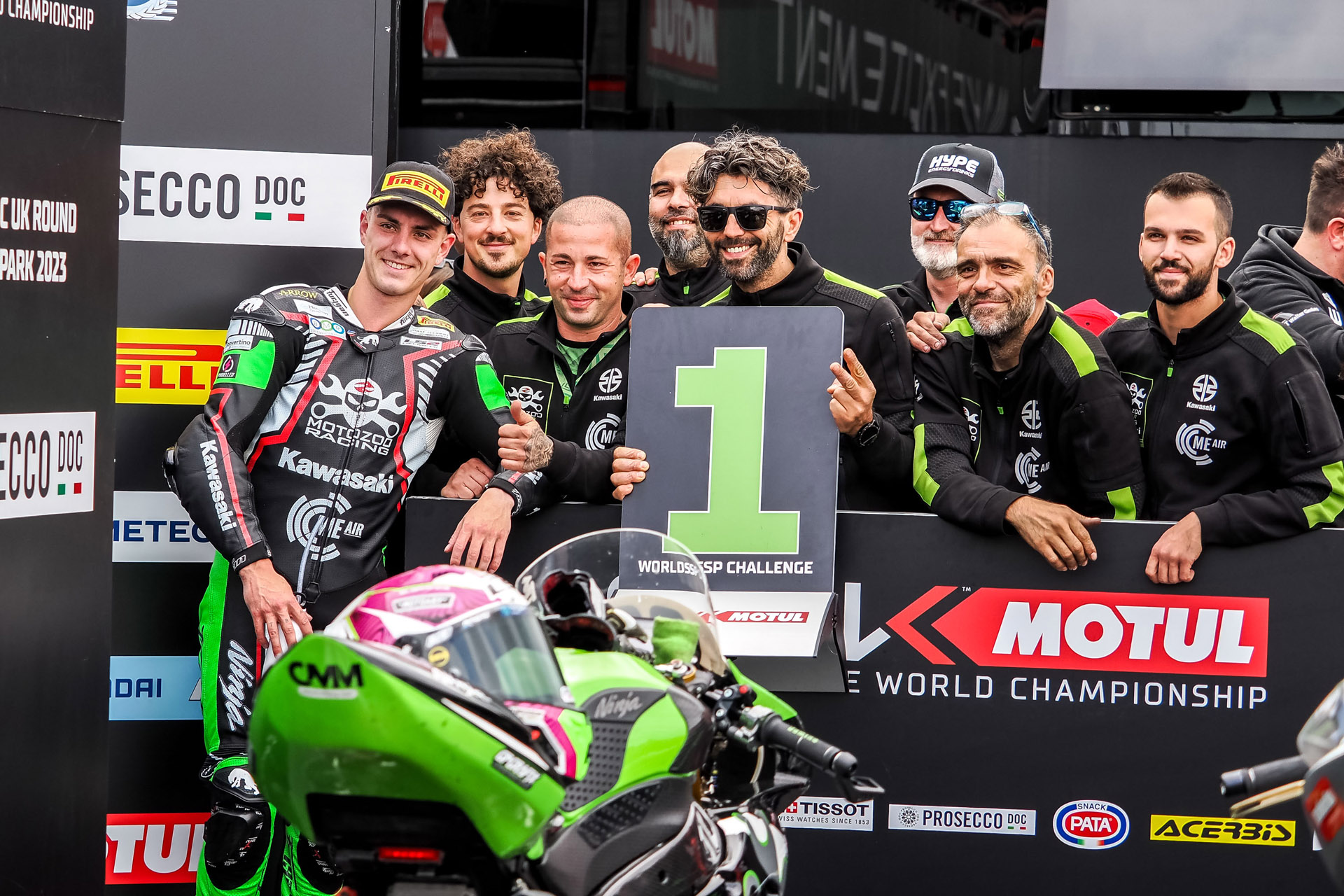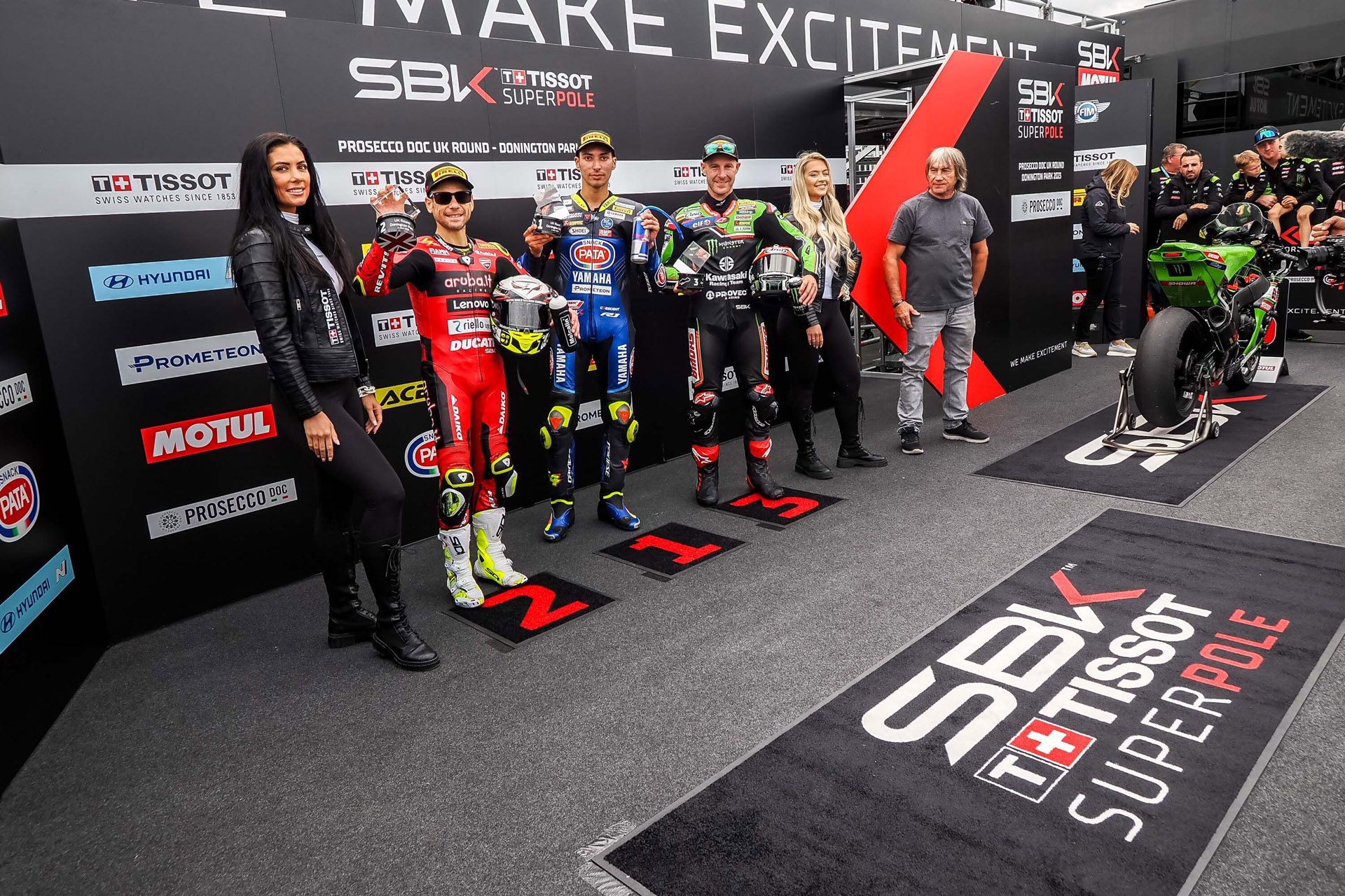 17 different polesitters throughout the MOTUL FIM Superbike World Championship’s history at Donington Park and with two of them on the current grid, we were in for a treat in WorldSBK Superpole. The rain had been dispelled and on track, plenty of riders were looking to excel as the existing lap record was broken and the battle for pole position triggered. As the chequered flag flew in the British breeze, it was Jonathan Rea (Kawasaki Racing Team WorldSBK) who took a first pole of 2023. On hand to present the awards in Parc Ferme was Roger Burnett, the first ever WorldSBK polesitter from Donington Park 35 years ago.