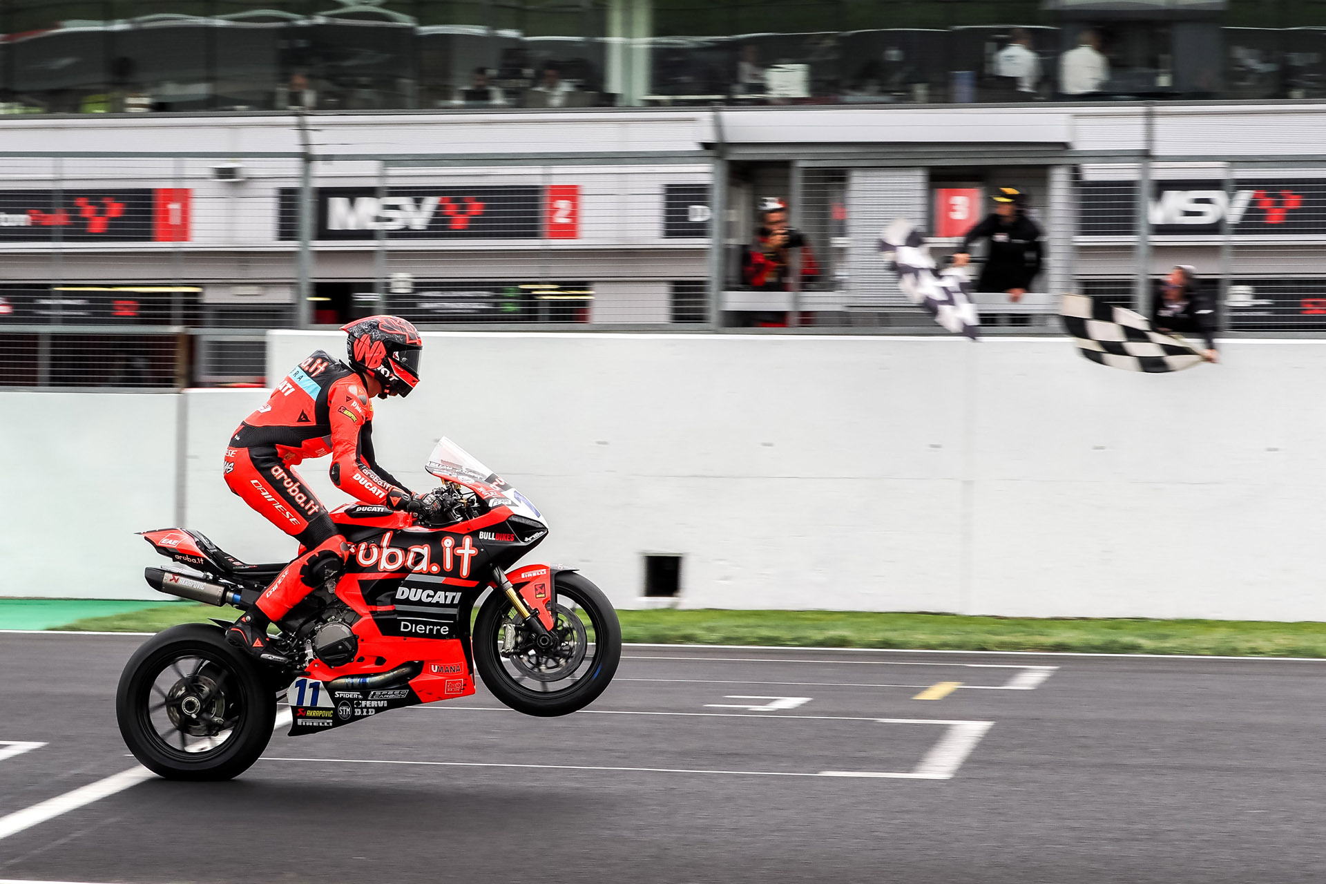Championship leader Bulega started from pole position and kept the lead from the start ahead of Yari Montella (Barni Spark Racing Team) and Stefano Manzi (Ten Kate Racing Yamaha). While the duo kept the pressure on in the early stages of the race, the Ducati rider was able to lap in the 1’29s to smash the race lap record and pull out a gap of two seconds on Manzi, in second, after six laps. The Ten Kate Racing rider moved into second after he passed Montella at Turn 11 on the opening lap.