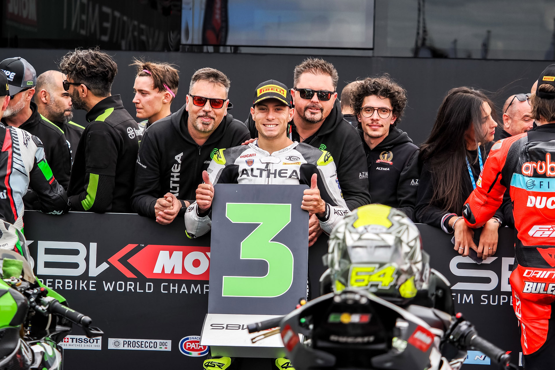 The battle for third featured two Italian riders as Montella and Federico Caricasulo (Althea Racing Team) fought it out for a podium. Montella, who started from the middle of the first row, dropped out of the top three when ‘Carica’ overtook him at Turn 11 on Lap 6 before the one-time winner was able to respond. From there, he was able to pull out a gap of more than two seconds on his rival to secure his first podium of the year.