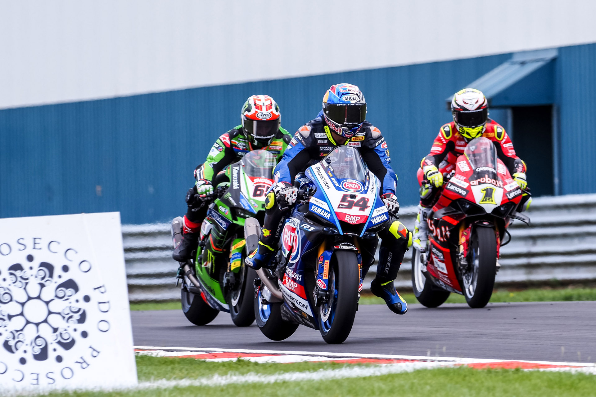 The rain fell at Donington Park in the FIM Supersport World Championship on Friday afternoon to cause shocks and surprises, with Jorge Navarro (Ten Kate Racing Yamaha) leading Thai star Anupab Sarmoon (Yamaha Thailand Racing Team) in the wet conditions. In the combined classification, it was Navarro’s teammate, Stefano Manzi, who led the way by just 0.015s as the Prosecco DOC UK Round shapes up to be an unpredictable and classic battle.
